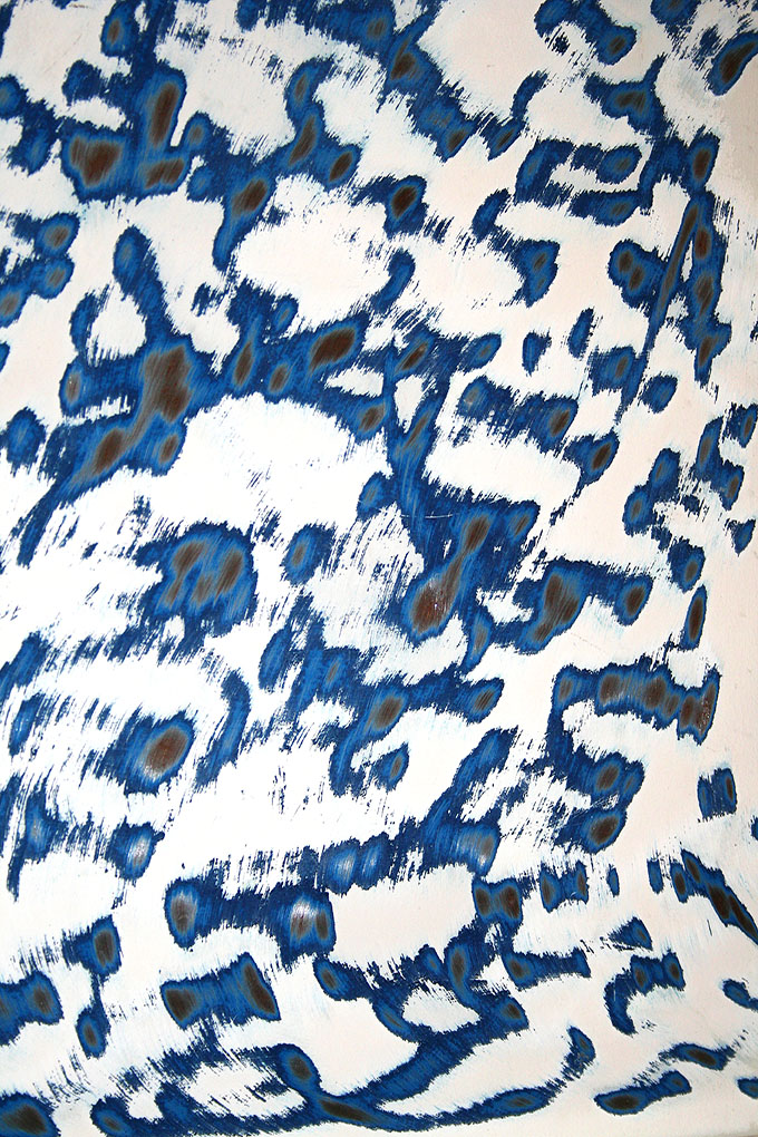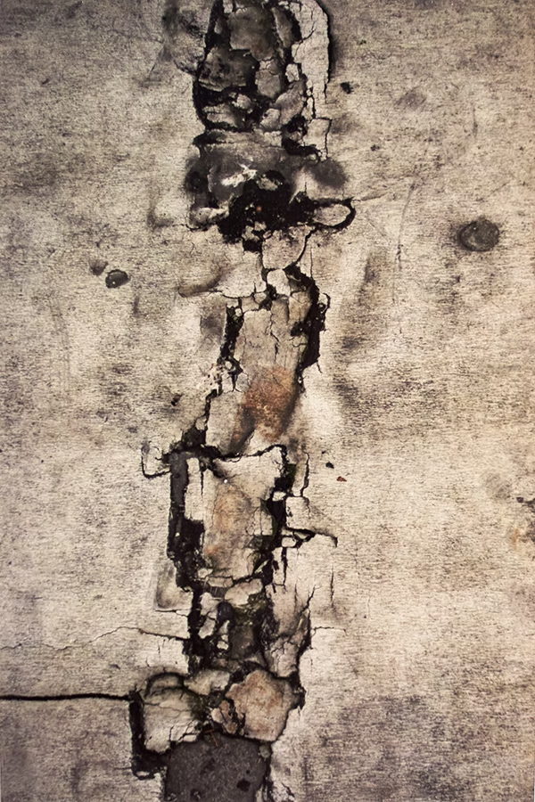 Cette série est un parallèle effectué entre des dégradations urbaines sur les murs et les trottoirs parisiens et des tableaux de nouveaux réalistes présents dans le coin de ma tête. Je suis partie en premier lieu des altérations et érosions des matières et non des tableaux. Le parallèle s’est effectué à partir de la rue.